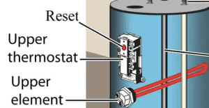 We recommended that our client first buy a hot water tank replacement kit to match the water heater’s specifications which has two replacement elements and two thermostats for about $45. These are available at Home Depot or On-line.